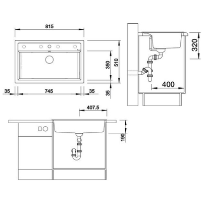 Размер 815х510, 1 чаша 745 х 350 х 190 мм, клапан-автомат