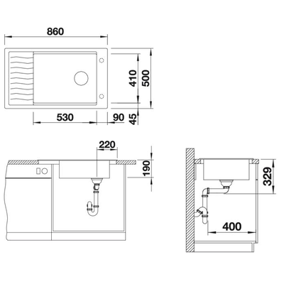 Габариты: 860*500, 1 чаша 530*410*190 + сушка
