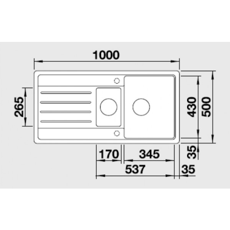 Габариты: 1000*500 мм, 1,5 чаши: 345*430*190 мм + 170*265*135 мм + сушка