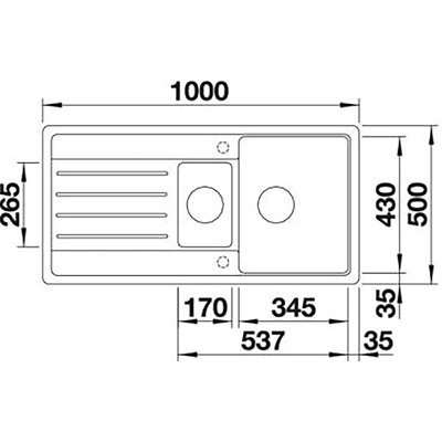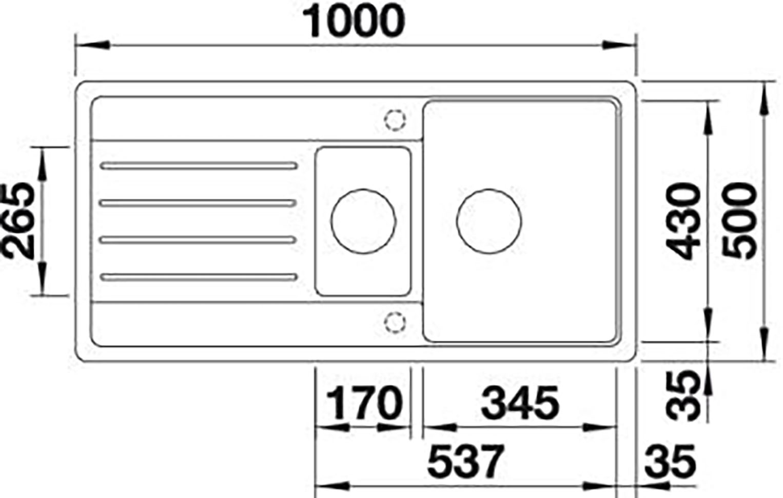 Габариты: 1000*500 мм, 1,5 чаши: 345*430*190 мм + 170*265*135 мм + сушка