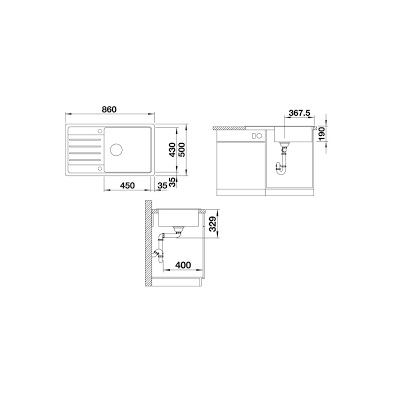 Габариты: 860*500 мм, 1 чаша: 450*430*190 мм + сушка