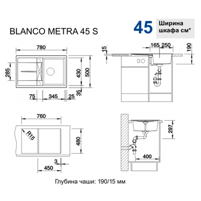 Габариты 780*500, чаша 345*430*190 + сушка
