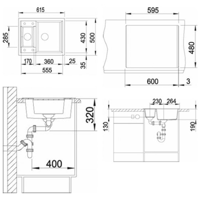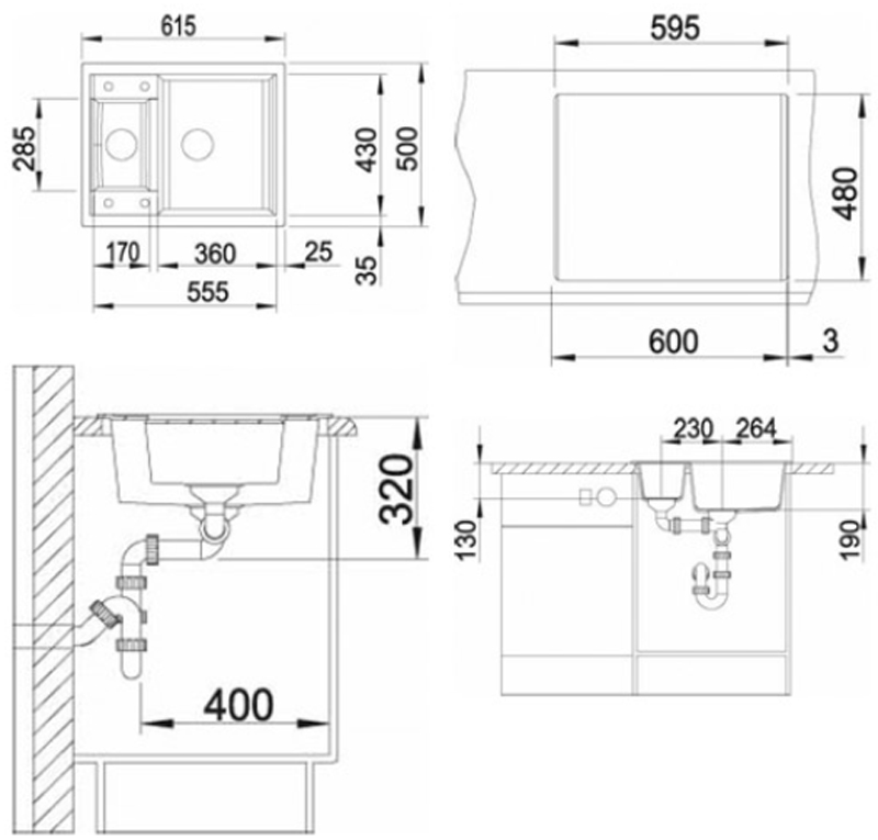 Габариты 615*500, чаши 360*430*190 + 170*285*130 мм