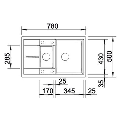 Габариты: 780*500 мм, 1,5 чаши: 345*430*190 мм + 170*285*145 мм + сушка