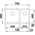 Габариты: 755*460 мм, 2 чаши: 430*400*200 мм + 270*400*200 мм