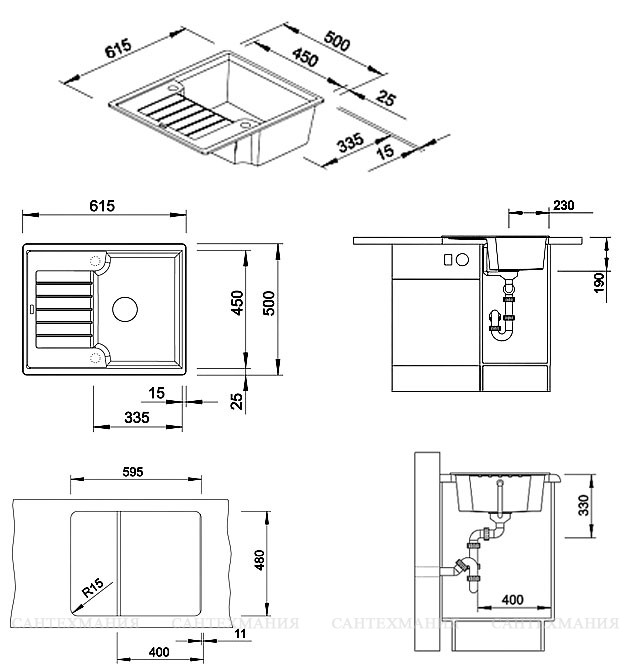 Габариты 615*500, чаша 335*450*190мм + крыло