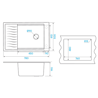 Габариты 780*500мм, чаша 450*410*190 мм + сушка
