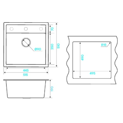 Габариты 515*510мм, чаша 445*350*190 мм + сушка