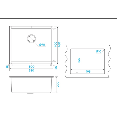 Габариты 530*460мм, чаша 500*400*200мм