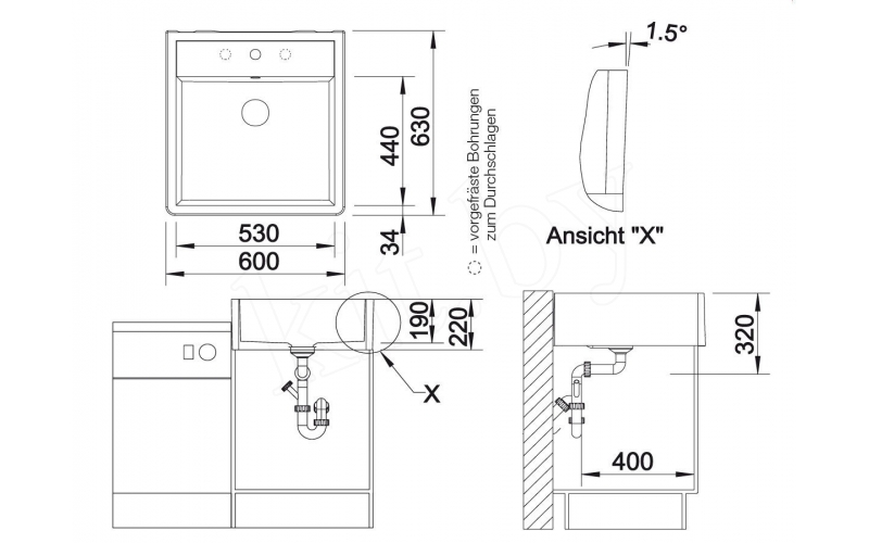 Габариты: 600*630 мм, р-р чаши 530*440мм, глубина 190мм, с фронтальной видимой частью