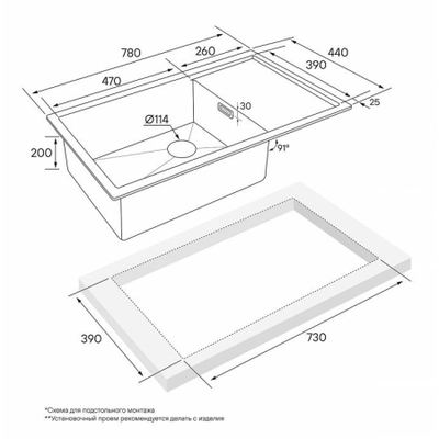 Монтаж в один уровень со столешницей / встраиваемый сверху / встраиваемый снизу