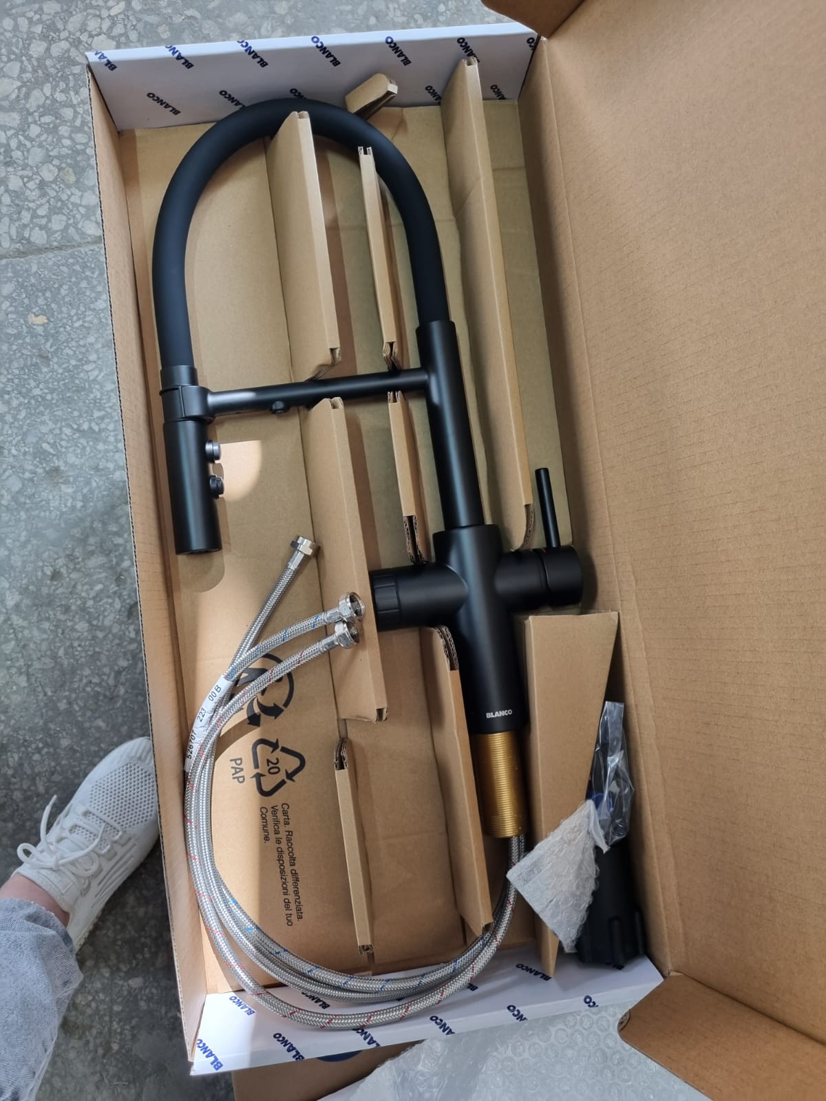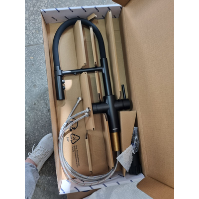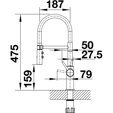 Высокий изогнутый поворотный на 360° излив 47,5 см, длина излива: 18.7 см, высота излива: 15.7см