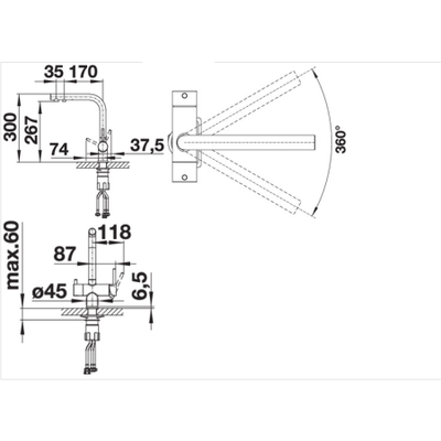 Высокий излив (266мм) с двойной функциональностью (фильтрованная и обычная вода)