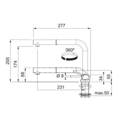 Модель с изменяемой высотой излива, Поворотный излив 360 градусов, Керамический дисковый картридж