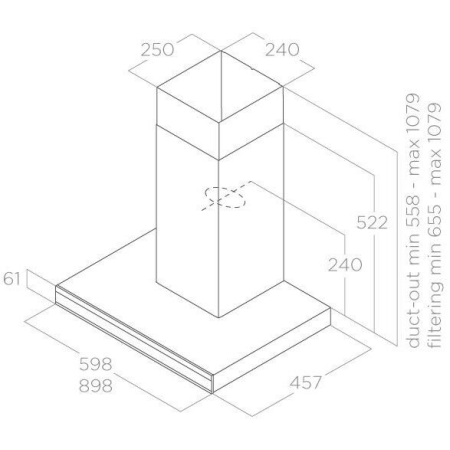 Электронное управление, освещение Led 1x7 Вт, 3 скорости + интенсив, 55-69 дБ, алюм. жиров. фильтр, диаметр воздуховода 150мм, (заказывается дополнительно фильтр угольный)