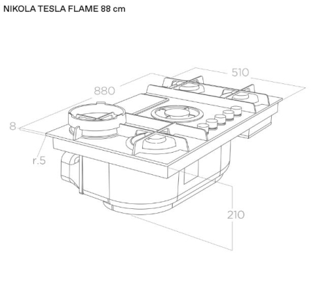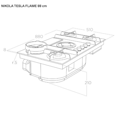 88см, класс А, газовая поверхность совмещенная с вытяжкой